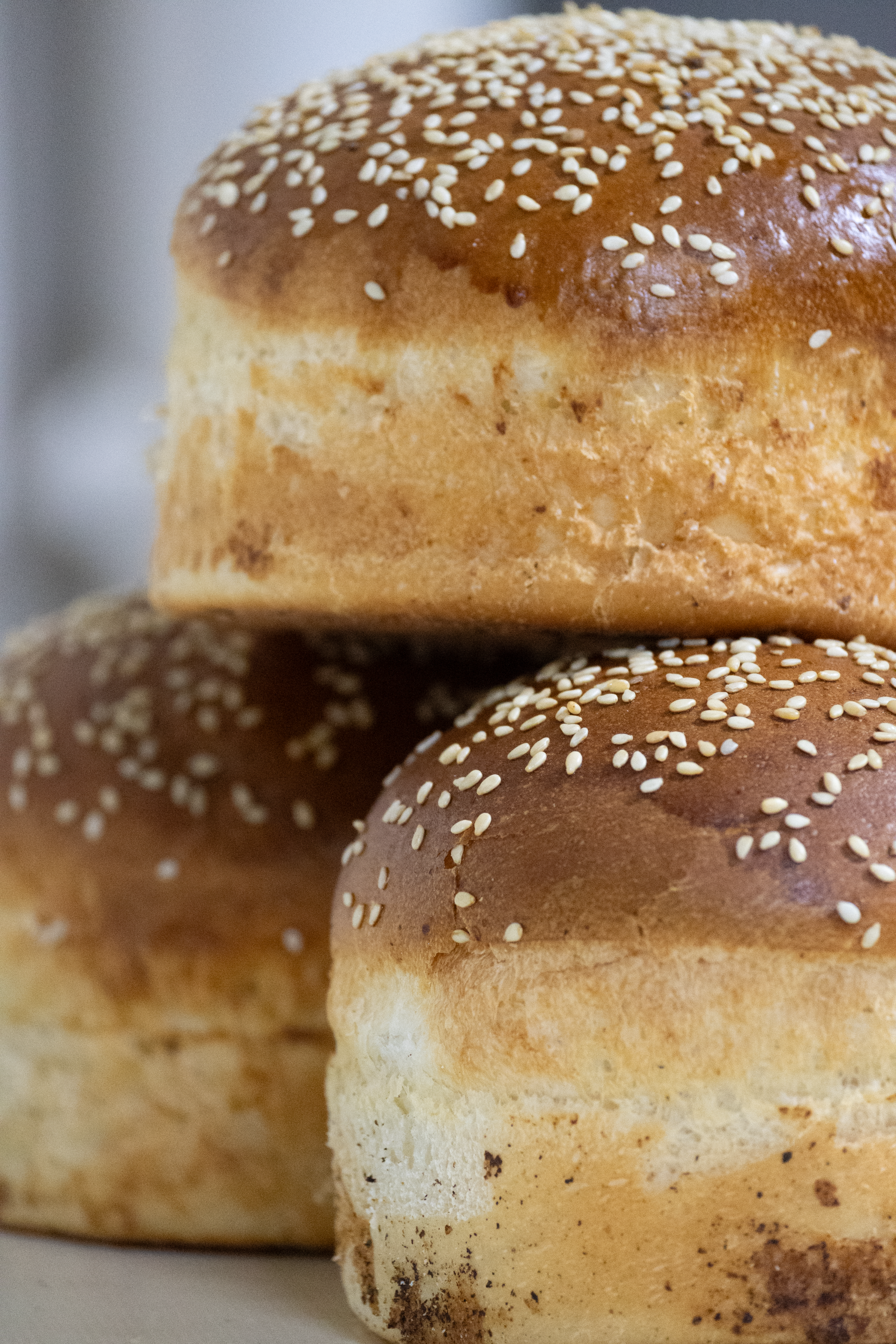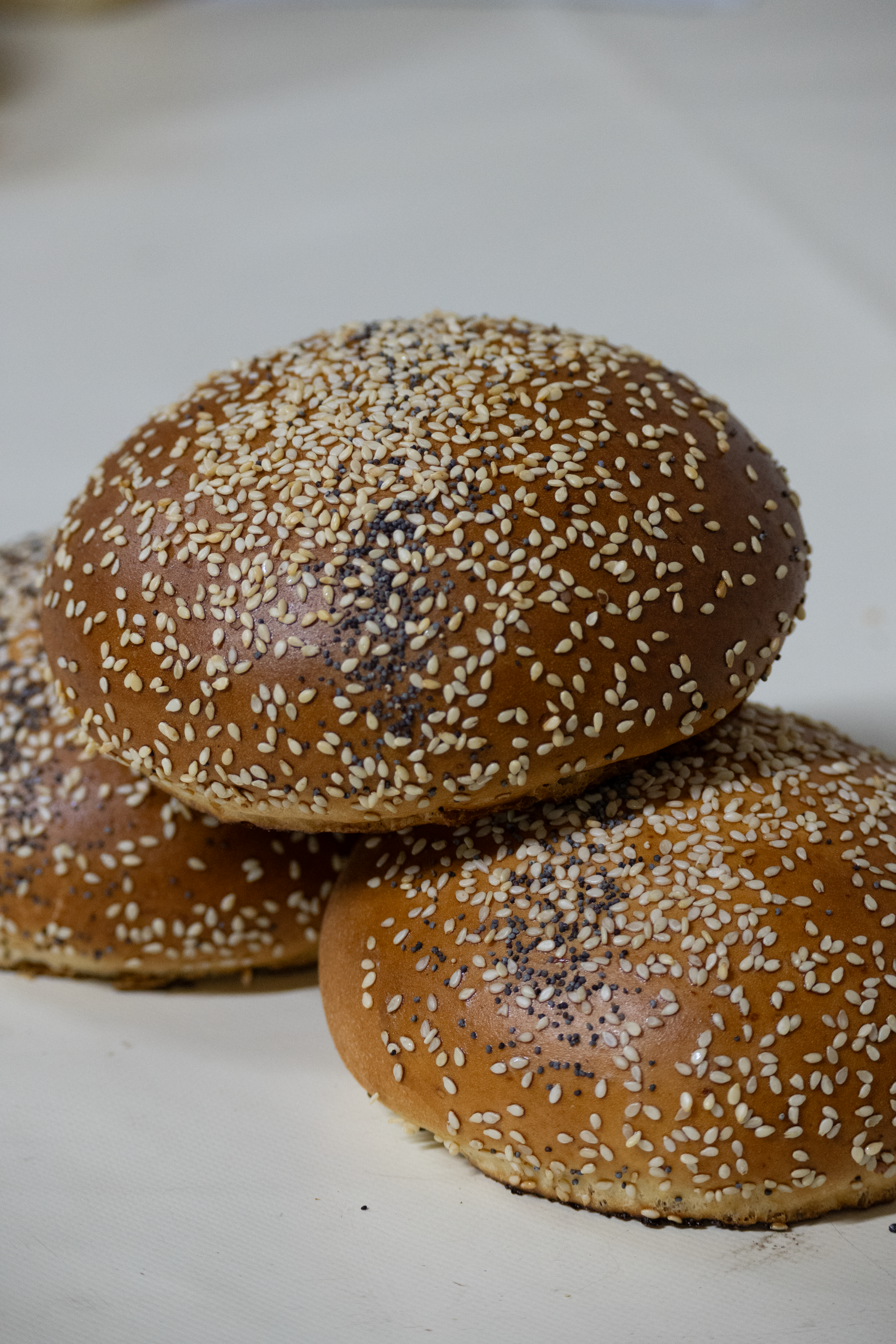 Üzeri beyaz susamla süslenmiş, yumuşacık dokusuyla hamburgerlerinize ekstra lezzet katan özel ekmek.